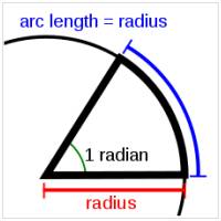 Радиан можно пересчитать на угловые градусы окружности или сферы, но длина его дуги (показана синим цветом) не вписывается без остатка (полностью) в окружность!