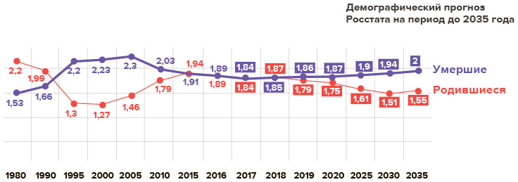 РОЖДАЕМОСТЬ И СМЕРТНОСТЬ В РОССИИ(млн человек в год)