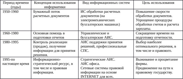 Назначение ИС (АИС) и их история развития поясняются таблицей 1.1..