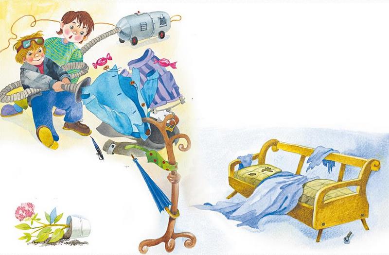 – Мы слишком сильный мотор поставили, – сказал Шпунтик. – Надо уменьшить его мощность, и пылесос перестанет всасывать крупные вещи.