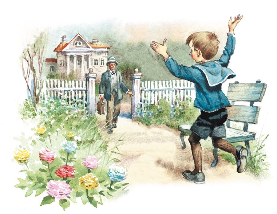 Есть человек, которого я очень люблю. Это мой отец. Какой он? Я никогда не задавался этим вопросом и не берусь его описывать. Он такой как есть, каким должен быть и иным быть просто не может. Мне всё нравится в нём: и лицо, и голос. Он всегда ласков со мной и часто называет меня уменьшительными именами. Когда мы возвращаемся с прогулки и я шагаю из последних сил, чуть не падая от усталости, он подбадривает меня: