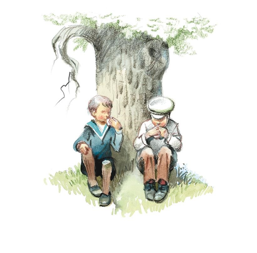 Выйдя из лавочки и усевшись неподалёку на пустыре под большим дубом, мы начинаем уплетать с аппетитом плюшки, которые после продолжительной беготни на чистом воздухе кажутся особенно вкусными. Меня, однако, интересует вопрос, зачем брат отдал Шеккеру монетки, и я спрашиваю его об этом.