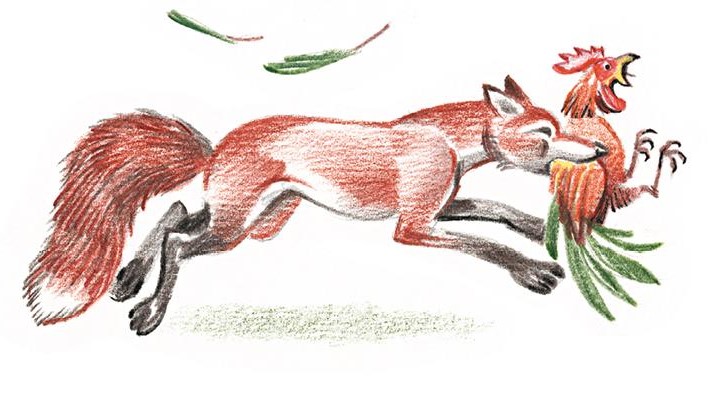 Сказки эти – самые распространённые, ходовые русские народные сказки, которые действительно можно слушать по многу раз – и не надоест. Среди самых любимых сказок – «Кот, петух и лиса», в которой коварная лиса хитро выманивает из дому глупого петуха: «Петушок, петушок, золотой гребешок, масляна головушка, шёлкова бородушка, выгляни в окошко, дам тебе горошку». И петух – дурень такой! – поддавшись на лесть, выглядывает в окошко, лиса тут же хватает его, после чего петух начинает призывать на помощь своего друга кота, ушедшего на охоту: «Котик, братик, выручи меня! Несёт меня лиса за тёмные леса, за высокие горы, в глубокую нору». Услыхав эти призывы, кот бросается на выручку и спасает петуха, предупреждая, что в следующий раз он уйдёт далеко и не сможет услышать его крик, поэтому не надо поддаваться на уговоры лисы. Но простоватый петух всё же каждый раз делал не так, как советовал ему кот. Конечно, он поступал глупо, непоследовательно, но я его понимал, этого петуха: бывает, и не хочешь чего-нибудь сделать, а вот возьмёшь и сделаешь; и помнишь, что тебе двадцать раз твердили: нельзя, нельзя, нельзя, а тебя словно под руку кто-то толкает. Было в натуре этого петуха что-то детское, доступное чувствам ребёнка.