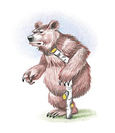 Самая страшная сказка была про медведя на липовой ноге. О том, как повадился медведь на пасеку к мужику мёд воровать, а мужик выскочил с топором. Медведь – удирать, а мужик бросил топор и отрубил медведю ногу. Баба стала варить мясо от этой медвежьей ноги, шерсть ободрала и стала прясть. А медведь решил отомстить. Сделал себе деревянную ногу из липы и берёзовую клюку, ночью пошёл в деревню. Идёт и приговаривает: «Скирлы, скирлы, скирлы, на липовой ноге, на берёзовой клюке. Все по сёлам спят, по деревням спят, одна баба не спит – мою шёрстку прядёт, моё мясо варит…»