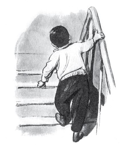 Стали они подниматься по лестнице, а Петя громко ступеньки считает: