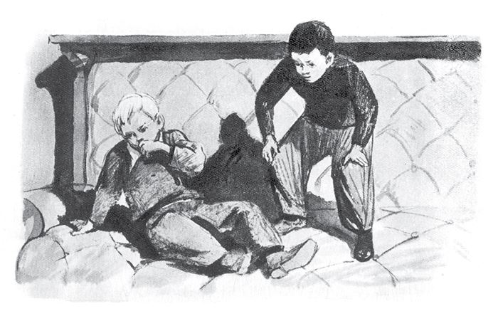 – Нет, – говорит Котька, – я не видал. Это я сам посыпал, потому что она была скользкая и я не мог на неё взобраться.