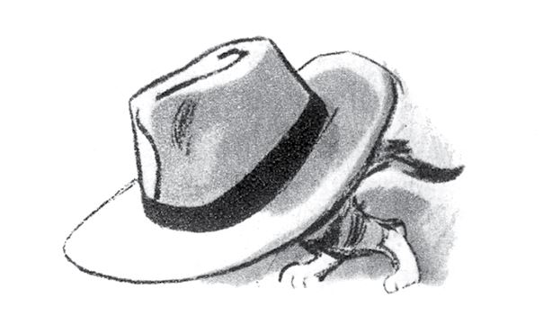Глядь, из-под шляпы высунулся серый хвост, потом лапа, а потом и сам котёнок выскочил.