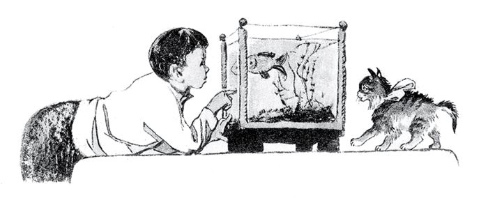 Однажды, когда мамы не было дома, к Виталику пришёл его друг Серёжа. Он увидел в аквариуме рыбку и сказал: