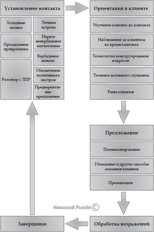 Подготовка проводится по всему циклу продаж. Рассматривается каждый блок цикла продаж с учетом и акцентами на тех этапах, которые по вашему прогнозу могут оказаться самыми сложными. В принципе вся эта книга является подготовкой. Я знаю точно, что, если вы будете делать так, как сказано здесь, ваши продажи увеличатся, а если вы поведете себя в переговорах по-другому, но с учетом того, что здесь написано, продажи увеличатся гораздо больше.