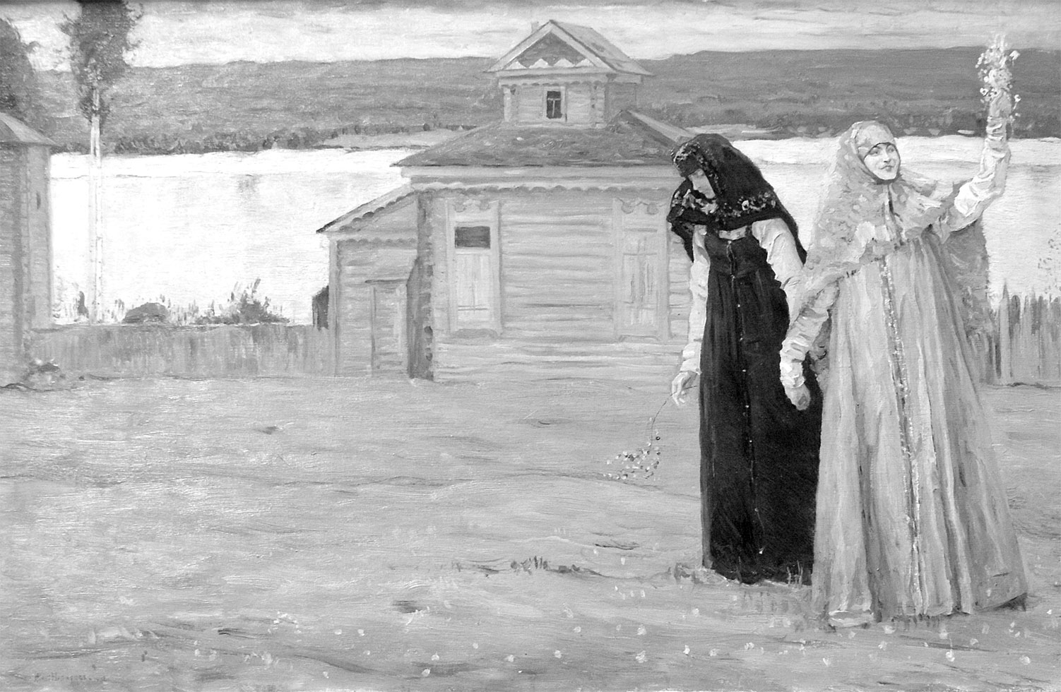 Русская история явила совершенно исключительное зрелище – полнейшую национализацию Церкви Христовой, которая определяет себя как вселенскую. Церковный национализм – характерное русское явление. Им насквозь пропитано наше старообрядчество. Но тот же национализм царит и в господствующей церкви. Тот же национализм проникает и в славянофильскую идеологию, которая всегда подменяла вселенское русским. Вселенский дух Христов, мужественный вселенский логос пленен женственной национальной стихией, Русской землей в ее языческой первородности. Так образовалась религия растворения в матери-земле, в коллективной национальной стихии, в животной теплоте. Русская религиозность – женственная религиозность – религиозность коллективной биологической теплоты, переживаемой как теплота мистическая. В ней слабо развито личное религиозное начало; она боится выхода из коллективного тепла в холод и огонь личной религиозности. Такая религиозность отказывается от мужественного, активного духовного пути. Это не столько религия Христа, сколько религия Богородицы, религия матери-земли, женского божества, освещающего плотский быт. В. В. Розанов в своем роде гениальный выразитель этой русской религии родовой плоти, религии размножения и уюта. Мать-земля для русского народа есть Россия. Россия превращается в Богородицу. Россия – страна богоносная. Такая женственная, национально-стихийная религиозность должна возлагаться на мужей, которые берут на себя бремя духовной активности, несут крест, духовно водительствуют. И русский народ в своей религиозной жизни возлагается на святых, на старцев, на мужей, в отношении к которым подобает лишь преклонение, как перед иконой. Русский народ не дерзает даже думать, что святым можно подражать, что святость есть внутренний путь духа, – это было бы слишком мужественно-дерзновенно. Русский народ хочет не столько святости, сколько преклонения и благоговения перед святостью, подобно тому, как он хочет не власти, а отдания себя власти, перенесения на власть всего бремени. Русский народ в массе своей ленив в религиозном восхождении, его религиозность равнинная, а не горная; коллективное смирение дается ему легче, чем религиозный закал личности, чем жертва теплом и уютом национальной стихийной жизни. За смирение свое получает русский народ в награду этот уют и тепло коллективной жизни. Такова народная почва национализации Церкви в России. В этом есть огромная примесь религиозного натурализма, предшествующего христианской религии духа, религии личности и свободы. Сама христианская любовь, которая существенно духовна и противоположна связям по плоти и крови, натурализировалась в этой религиозности, обратилась в любовь к «своему» человеку. Так крепнет религия плоти, а не духа, так охраняется твердыня религиозного материализма. На необъятной русской равнине возвышаются церкви, подымаются святые и старцы, но почва равнины еще натуралистическая, быт еще языческий.