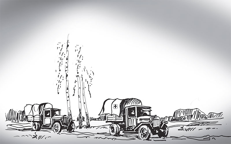 Выпрямляюсь – да, замечательно! Идут три санитарные полуторки и эмка. Видимо, начальство из ПЭПа едет. И помощь! Побежал им навстречу, машу рукой – сюда подъезжать… Из эмки вышли главный хирург Бочаров и еще незнакомые врачи со шпалами. В санитарках – медицина, носилки. Докладываю. Слушает внимательно и не торопит… Похвалил скупо: