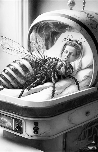 Доктор положил на стол кюветку и убрал с нее салфетку. Это была пчела! Огромная, механическая, величиной в кисть руки пчела. Совсем как настоящая, только больше.