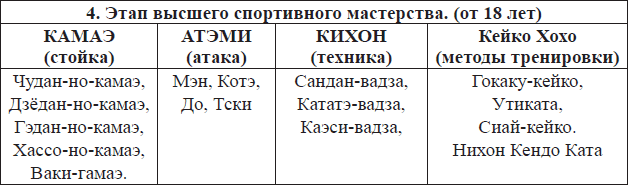 4-й этап обучения – Этап высшего спортивного мастерства (возраст от 18 лет).