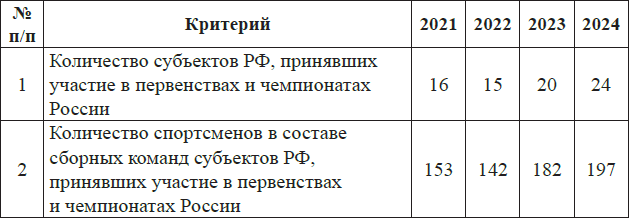 В научных исследованиях установлено, что количество подготовленных мастеров спорта международного класса может служить объективным критерием конкурентоспособности сборной команды Российской Федерации по соответствующему виду спорта на предстоящих соревнованиях.