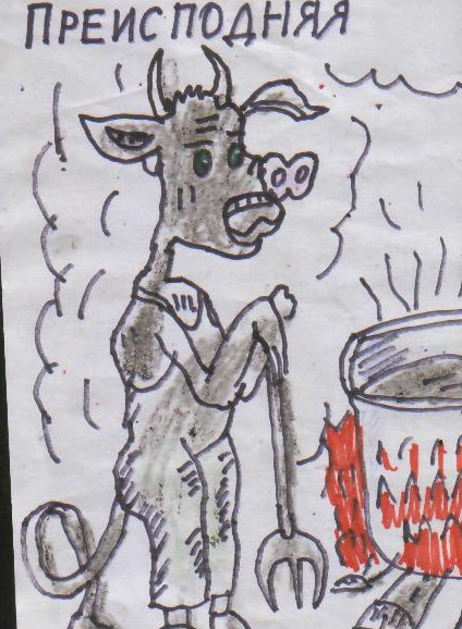 В дьявольской пасти в несколько рядов виднелись острые клыки, то и дело вываливался раздвоенный язык, с которого капала желтая ядовитая слюна, оставляя в каменном полу воронки. Вместо пальцев у него были длинные когти, которыми, как алмазом, он рассекал камни. Легчайшего прикосновения ему было достаточно, чтобы оставить в камне глубокие борозды. Длинные мохнатые ноги заканчивались раздвоенными копытами. Когда он ступал по каменному полу, они издавали громкий стук. Если он стучал копытами в гневе, то всё кругом сотрясалось, дрожали стены и каменный свод. Казалось, что стены и свод вот-вот обрушатся, и всё погребут под собой. Тогда всё в преисподней сжималось, старалось затаиться и дрожало в страхе. И всё старалось найти укромное место, щель, где можно было бы затаиться и переждать гнев Всемогущего.