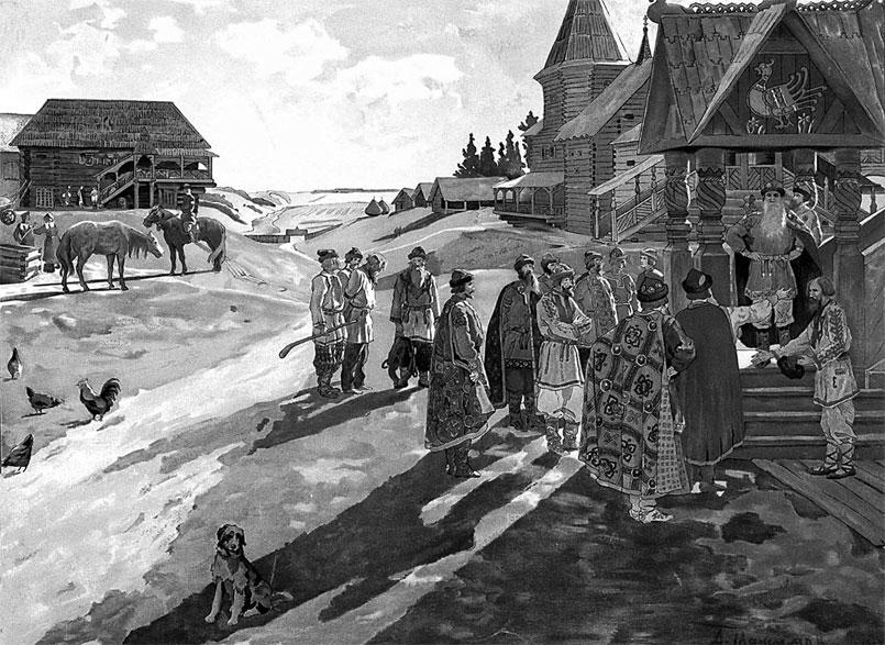 Вид русского села времен Алексея Михайловича. «Альбомъ Мейерберга. Виды и бытовыя картины Россiи XVII века»