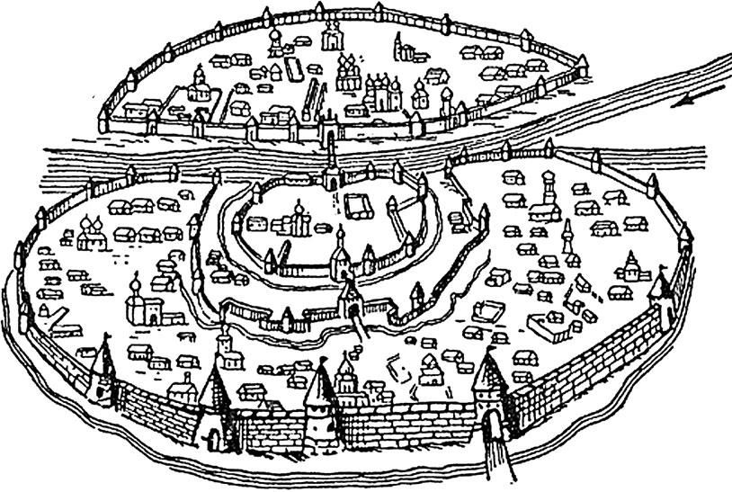 Название «город» принималось в различных смыслах. Первоначально это слово значило огороженное место, то есть то, что ныне ограда, огорожа. В старые богатырские времена людским жилищам часто угрожали то нашествия чужих, то свои домашние неприятели, при частых неурядицах и междоусобицах, поэтому их старались укреплять – огораживать. Для такой важной цели достаточно было тогда плетня или частокола, поэтому одно и то же слово город (огород, город) в смысле огорожки означало и огорожу, охранявшую домашнее жилье от животных, и твердыню – от неприятельского нашествия. Местности, где укрепления представляли больше надежды на безопасность в случае внешних нападений, сделались центрами прилива народонаселения: одни селились в самих городах, другие поблизости к ним, чтоб иметь возможность убежать в охранное место, когда наступит опасность. Все больше или меньше имели нужду в городах; отсюда возникло, что города получили значение преимущества пред неукрепленными поселениями и последние подпадали им в зависимость, которая, по духу того времени, когда владычествовала сила, заменялась часто и легко порабощением. Но не все города имели равное достоинство по своей крепости: крепчайшие делались центром власти, и им подчинялись другие. Тогда между городами образовались два рода – старшие и младшие, сильнейшие и слабейшие, или города и пригороды. В связи со стратегическими условиями подчинению меньших городов большим способствовали исторические обстоятельства народной жизни. Таким образом, собственно слово город начало означать господствующее место – столицу над краем, заключавшим несколько пригородов, сел, деревень. Так, Киев был городом земли полян или Земли Русской, Чернигов – городом Земли Северской, Новгород – Земли Новгородской, Псков – Земли Псковской, Хлынов – Земли Вятской, а Вышгород, Белгород были пригороды Киева, Ладога – пригород Новгорода, Изборск – пригород Пскова и т. д. Когда раздельные части Восточной Руси сплотились между собою, Москва получила смысл города всей Русской земли, – но тогда самое слово «город» изменило прежнее значение. Городом не называлось уже главное правительственное место, где находился центр правления, напротив, это слово начали употреблять в обратном смысле. Москва называлась Москвою: собственное имя ее нередко принималось нарицательным именем русской столицы; говорилось: «на Москве и в городах», как теперь говорится: в столице и провинциях. В XVI и XVII веках название «город» сохраняло два значения: укрепленной местности и административного провинциального пункта. В городах происходило соприкосновение народа с властью; там была складка военной силы, которой поручен край для охранения; туда стекались государственные доходы, вносимые краем, наконец, там жители края искали убежища во время военных опасностей. По мере расширения народонаселения возникали города один за другим и, сообразно благоприятным условиям, одни получали пред другими преимущества в отношении важности своей. Таким образом, города были большие и меньшие, и большие начальствовали над последними. Кроме городов постоянно населенных, существовали еще укрепленные места, называемые острогами; они находились преимущественно в отдаленных от средоточия власти пограничных и малонаселенных областях, были вообще меньше городов
