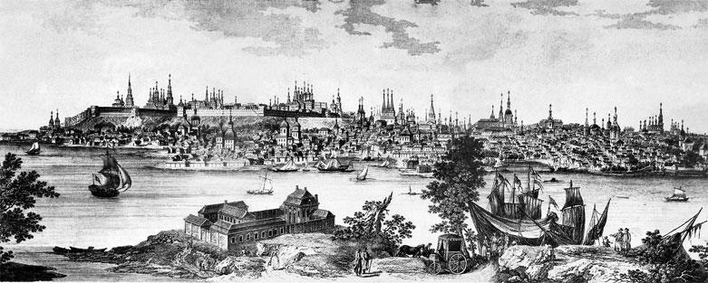 Вид города Казани. 1767 г. Гравюра по рисунку Леспинса