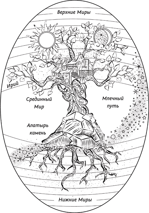 От Дуба расходятся девять миров Срединного Мира: три светлых, три серых и три темных. Они доступны восприятию обычного человека. Светлые миры, или миры благости, ближе всего к Дубу. В них все хорошо, нет бед и проблем, там человек расслаблен. В серых мирах есть и хорошее, и плохое. А темные миры, что с самого края Яви, – это миры борьбы, жестокости, бед и войн. Соприкоснувшись с ними, человек может стать жестче.