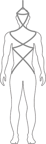 Некоторые короткие жилы пересекаются в вертикальной плоскости и закрывают важные центры. Во-первых, это жилы, защищающие спереди и сзади пупок – средоточие жизненной силы человека. От их натяжки зависят физическое здоровье человека и его поведенческие модели. Если поставить пальцы рук на бедро и по диагонали под ребра, то должна ощущаться натяжка этих жил. Во-вторых, это жилы, защищающие область сердца. Они отвечают за все страсти и желания. Если бесы садятся на плечи человеку, их ноги свисают на эту зону.