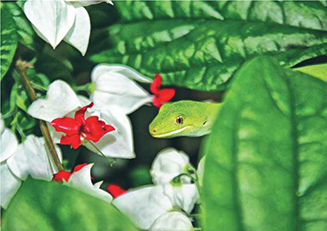 Naultinus elegans вукрытии Clerodendrum thomsoniae