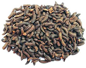 БОЛЬШОЙ МУЧНОЙ ХРУЩАК (TENEBRIO MOLITOR). В террариумистике в качестве корма используется личиночная форма жуков и куколка. Взрослых жуков гекконы отказываются употреблять в пищу, но его очень хорошо едят представители семейства Agamidae. Мучной хрущак проходит четыре стадии жизненного цикла: яйцо, личинка, куколка и взрослый жук. Размер личинки от 2,5 см и более, куколка около 1,5–2,0 см.