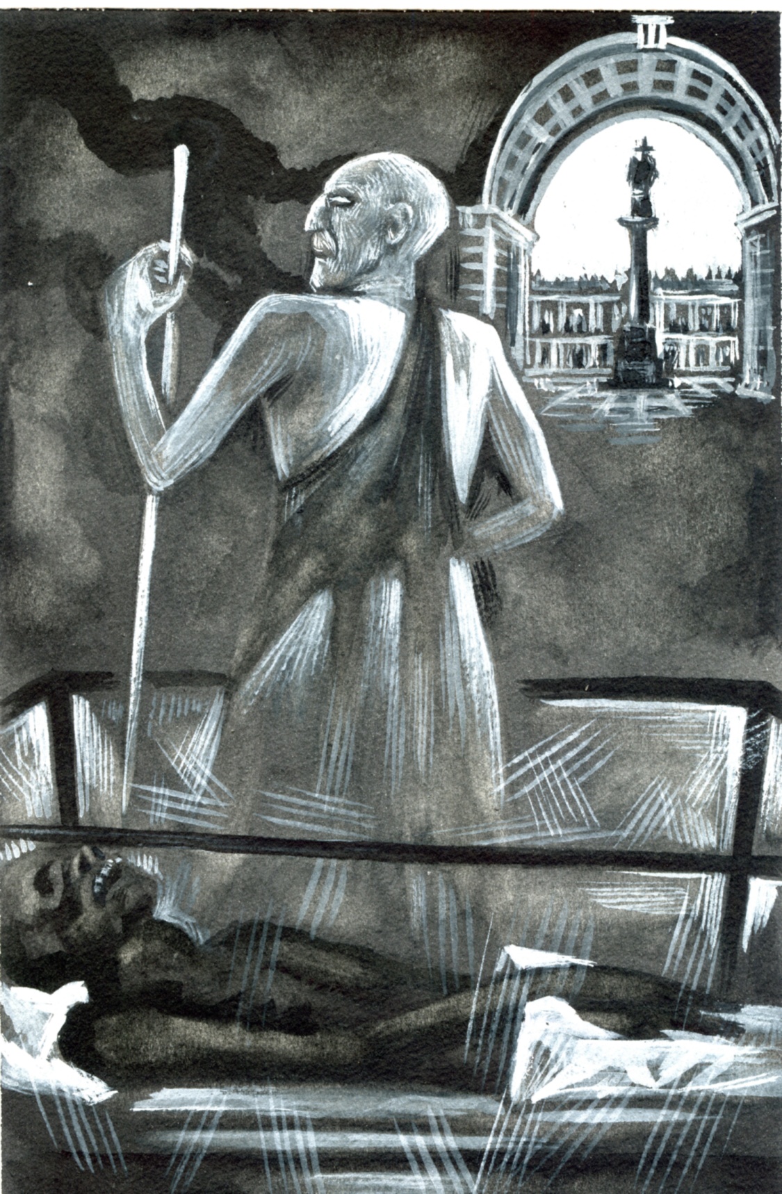 Дома, поздно вечером подойдя к настенному зеркалу, я увидел в нем себя в белом балахоне, с неподвижным, неживым лицом. В первую минуту у меня мурашки побежали по спине…