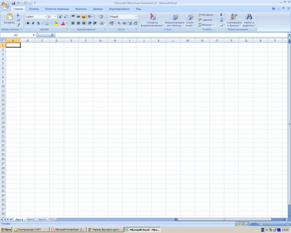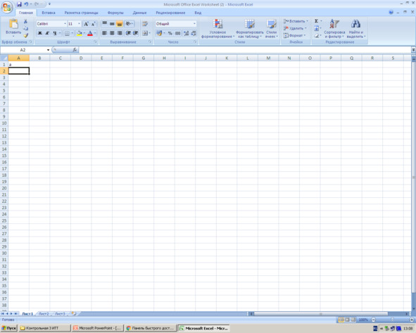 – При загрузке программы активная ячейка на чистом листе находится по адресу A1 (рис.3). Введите с клавиатуры букву «a» и нажмите «Enter». Курсор сместится вниз на ячейку A2 (рис.4).