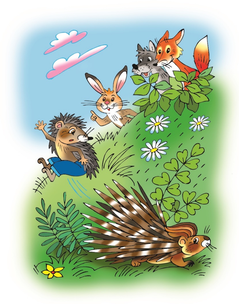 Ёжик ухмыльнулся и поспешил дальше. Бежит, а навстречу – Волк. Не успел Волк увернуться, как задел его Ёжик своими колючками.