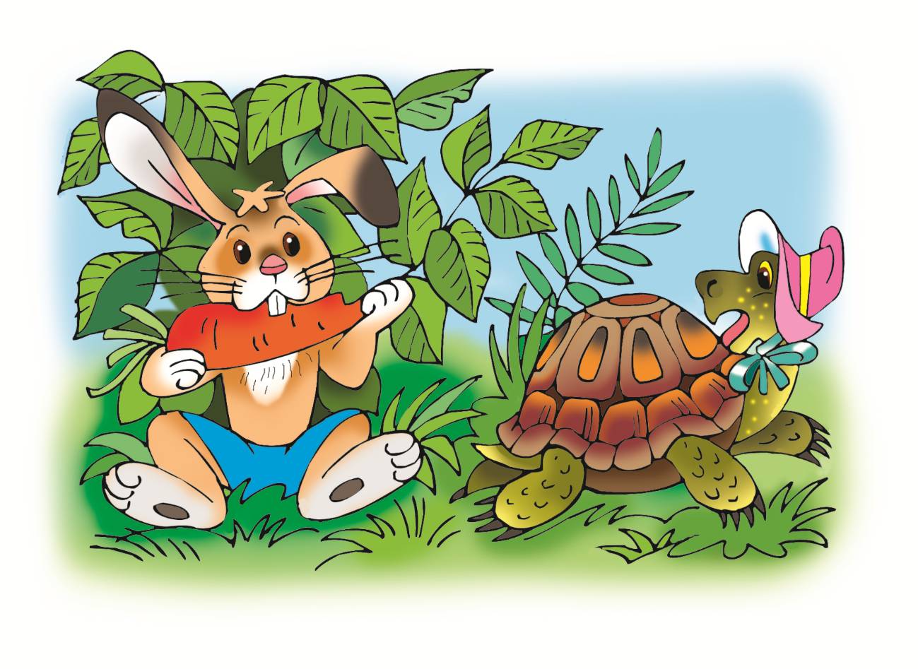 Пока Черепашка сдвинулась с места, Зайчик уже сидел возле него и догрызал морковку.
