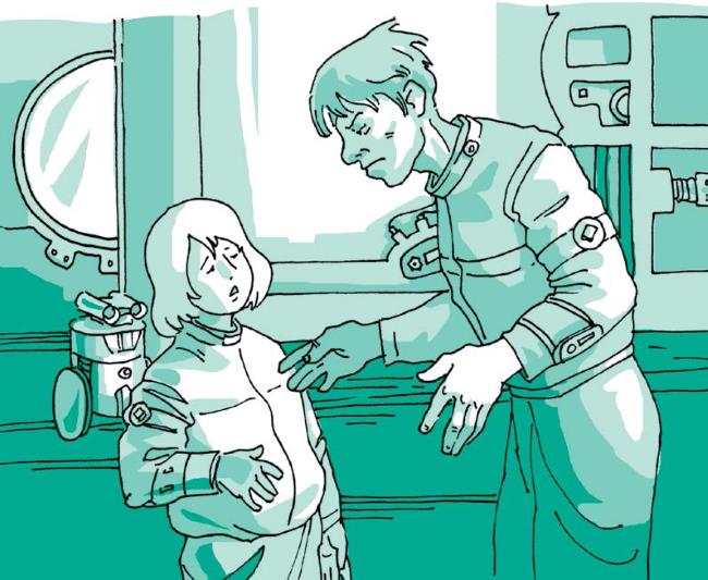 Там уже были все. Серебренцев стоял у иллюминатора и смотрел на простирающуюся под станцией Землю, за ним сгорбившийся Мурзков изображал, что тоже смотрит, но ему из-за спины ничего не было видно. Дядя Саша сидел ко входу спиной и читал с планшета. Лиза заметила, что Жанна едва заметно улыбнулась, когда увидела его.