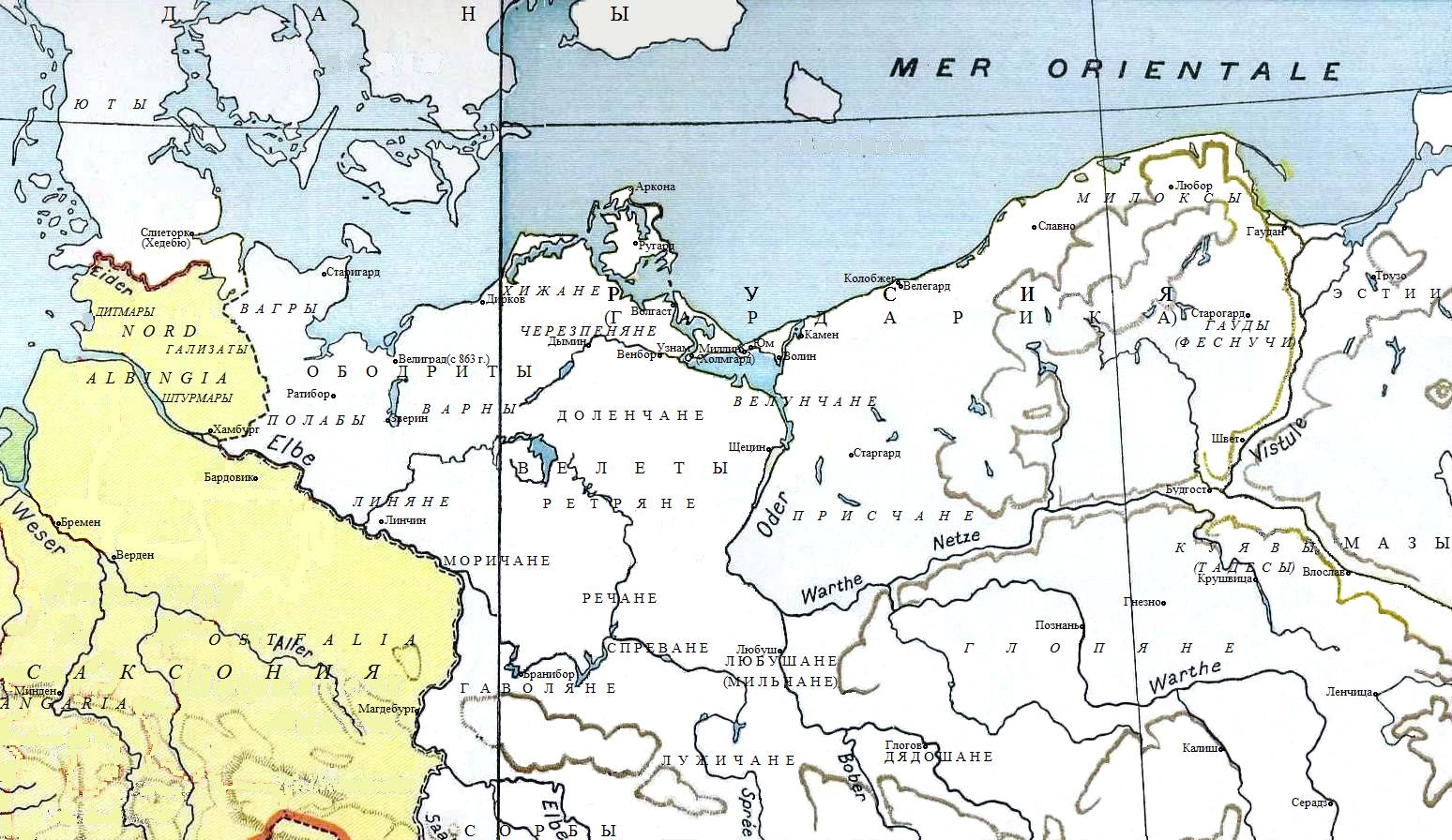 В заключение следует заметить, что первопроходцами на Балтийском море являлись венды, отчего финны называют и русских venalainen6. Что же касается третьей области руссов, которых латинские авторы именуют восточными ободритами7, она находилась на южном побережье Балтийского моря. Границы Русции, или Рузии8, со временем менялись, но именно ее скандинавы называли Гардарикой, а поляки позже – Поморьем.