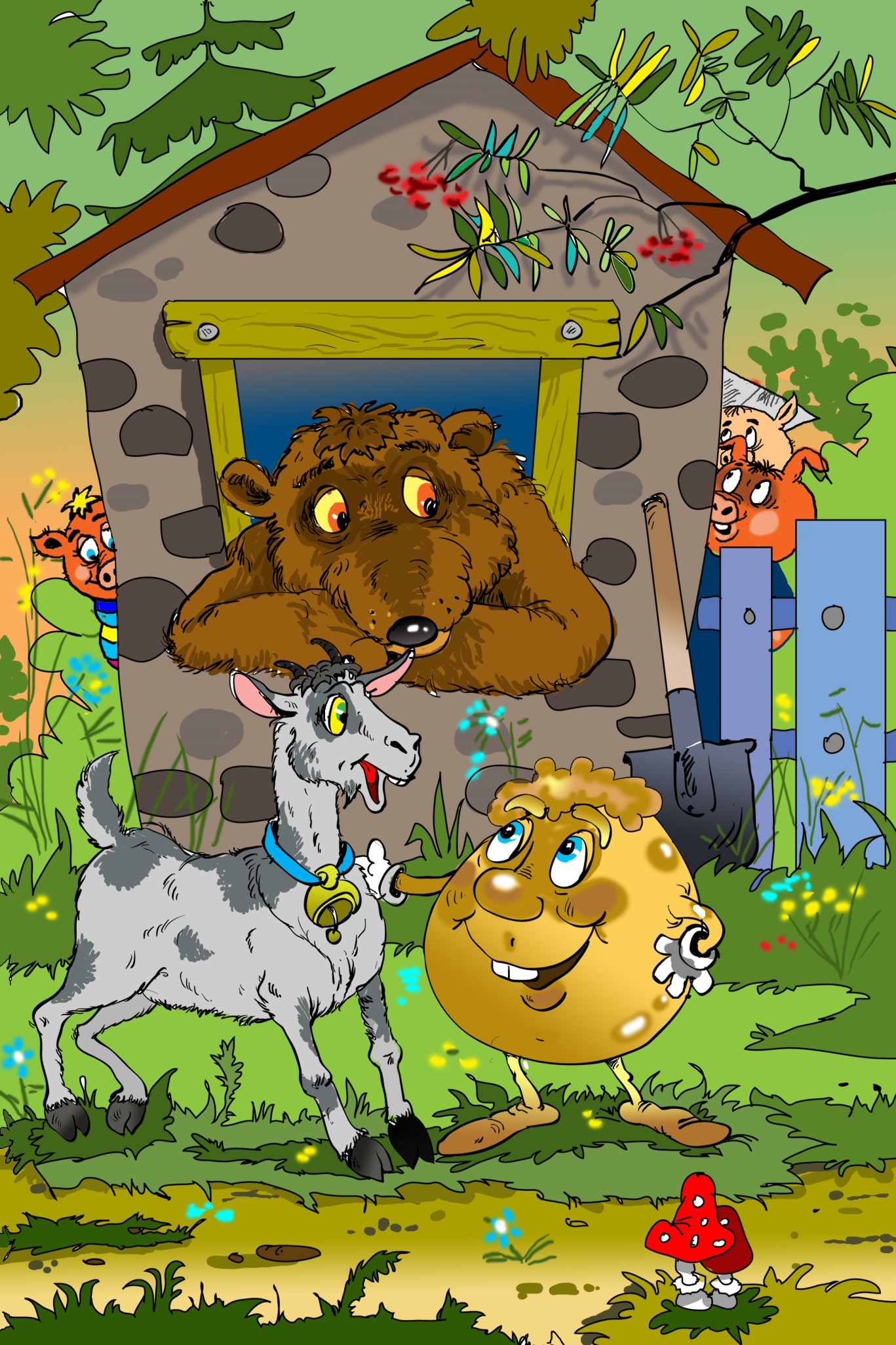 – Отойди, – говорит козлу, – а то я за себя не ручаюсь. Три дня в животе пусто. Колобка съем и уйду.