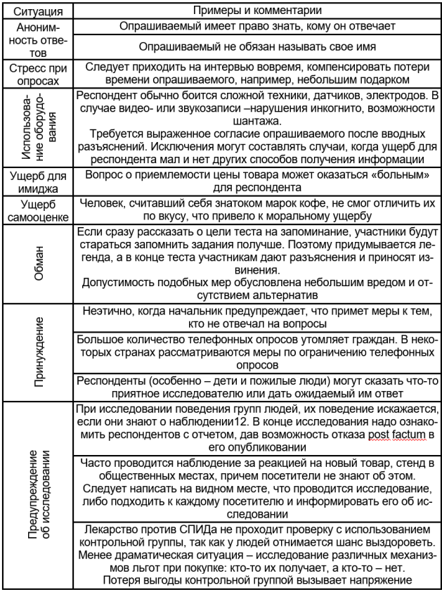 С точки зрения этики следует рассмотреть взаимоотношения между всеми участниками маркетинговых исследований.