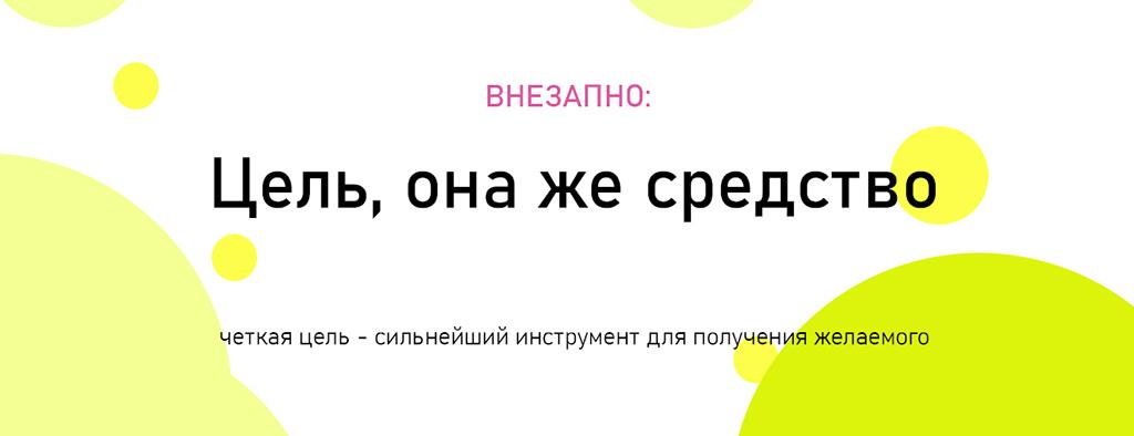 “Как цель может быть средством?” – спросите вы. Да, я понимаю, что это выглядит как сбой в матрице, но мы здесь для того, чтобы ломать стереотипы и идти к цели инновационными и эффективными способами. Сейчас вам необходимо сосредоточиться и постараться осознать принять тот факт, что ваша ЦЕЛЬ – это и есть ваше СРЕДСТВО для нахождения правильного направления движения.