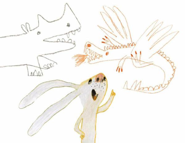 – Я яблоки люблю, – ответил Заяц. И внезапно добавил: – И ещё у меня есть друг Дракон. Он любит и яблоки, и вафли. Он, знаешь, какой большой! Во! А как дунет огнём – во! И от твоего шалаша одни угольки останутся.