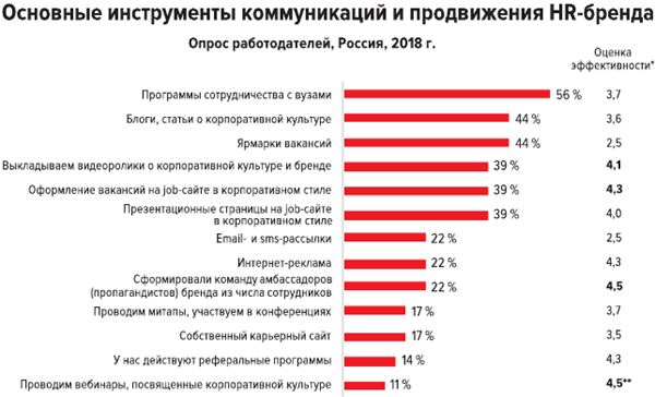 Уровень развития HR-функции на российском рынке в целом очень неоднородный: есть продвинутые компании, применяющие лучшие мировые практики, и есть компании, где функция только начинает развиваться или ее пока просто не существует (кроме КДП[1] и текущего подбора персонала). Работа с брендом работодателя в системном ключе приоритетна для первых, в планах у вторых и пока даже не стоит на повестке дня у третьих.