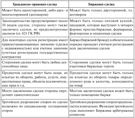 Таблица 2. Сравнительная характеристика гражданско-правовых и биржевых сделок.