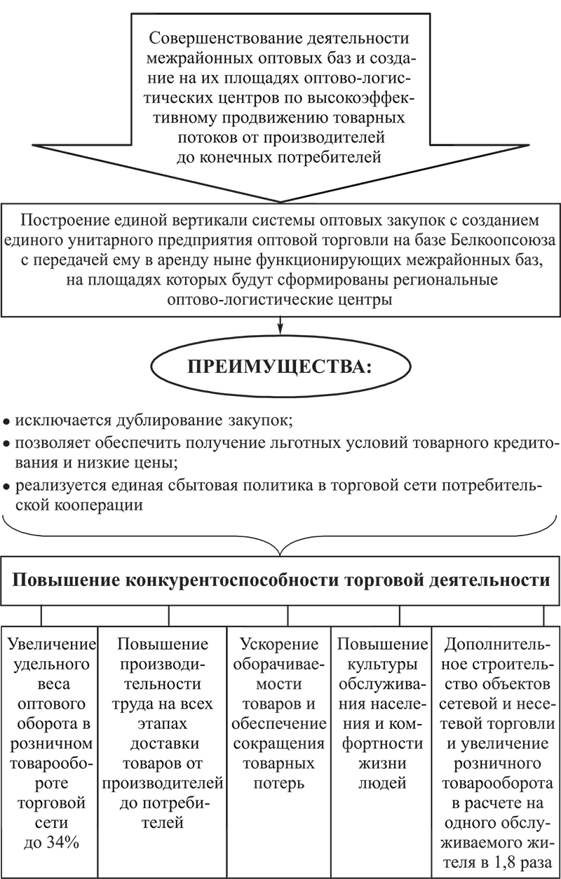 Основная задача развития оптовой и розничной торговли – повышение уровня и качества обслуживания и полное удовлетворение платежеспособного спроса обслуживаемого населения в товарах, приостановление тенденций снижения доли потребительской кооперации в общем объеме розничного товарооборота Республики Беларусь: