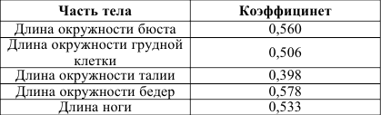 Коэффициенты для вычисления идеальных пропорций тела при росте свыше 164 см