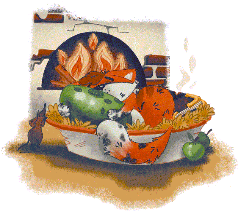 В три громадных скачка Кот пересёк поляну, влетел в комнату и бросился к печи. Из-под пылающих тряпок торчал уголок книги. Ни секунды не раздумывая, Кот рванулся в огонь и выхватил книгу. Он тушил лапами начавший тлеть переплёт, мяукая от боли и обиды. Вспомнив про ведро с водой, Кот хотел было вылить его на книгу, но побоялся испортить её окончательно. Поэтому вылил воду на себя и, мокрый, прижался к обложке.