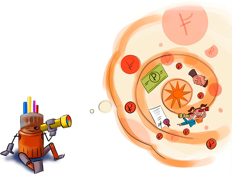 – О, моя дорогая Мышь, – завод важно поправил очки и посмотрел на мышку. – Инвестиция – это доверие, точнее, вклад посторонних людей в наше развитие. Чем больше в нас верят, тем больше нам отправляют денег разных размеров, цветов и форм.