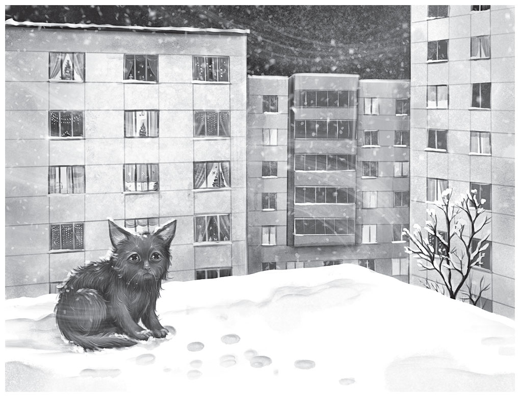 Чёрный котёнок ютился на деревянном ящике среди хлама рядом с гаражом. Снег налип на короткую шерсть. Малыш дрожал, подбирая под себя тонкий хвост. В поисках места потеплее и поукромнее он перепрыгнул на другой ящик. Котёнок с надеждой смотрел на жёлтые окна серого здания-великана и ждал, что его вот-вот заберут. И он снова будет играть в квартире с синим диваном, о который так приятно точить коготки, приветливо мяукать каждому и может царапаться, когда его бесцеремонно будят.