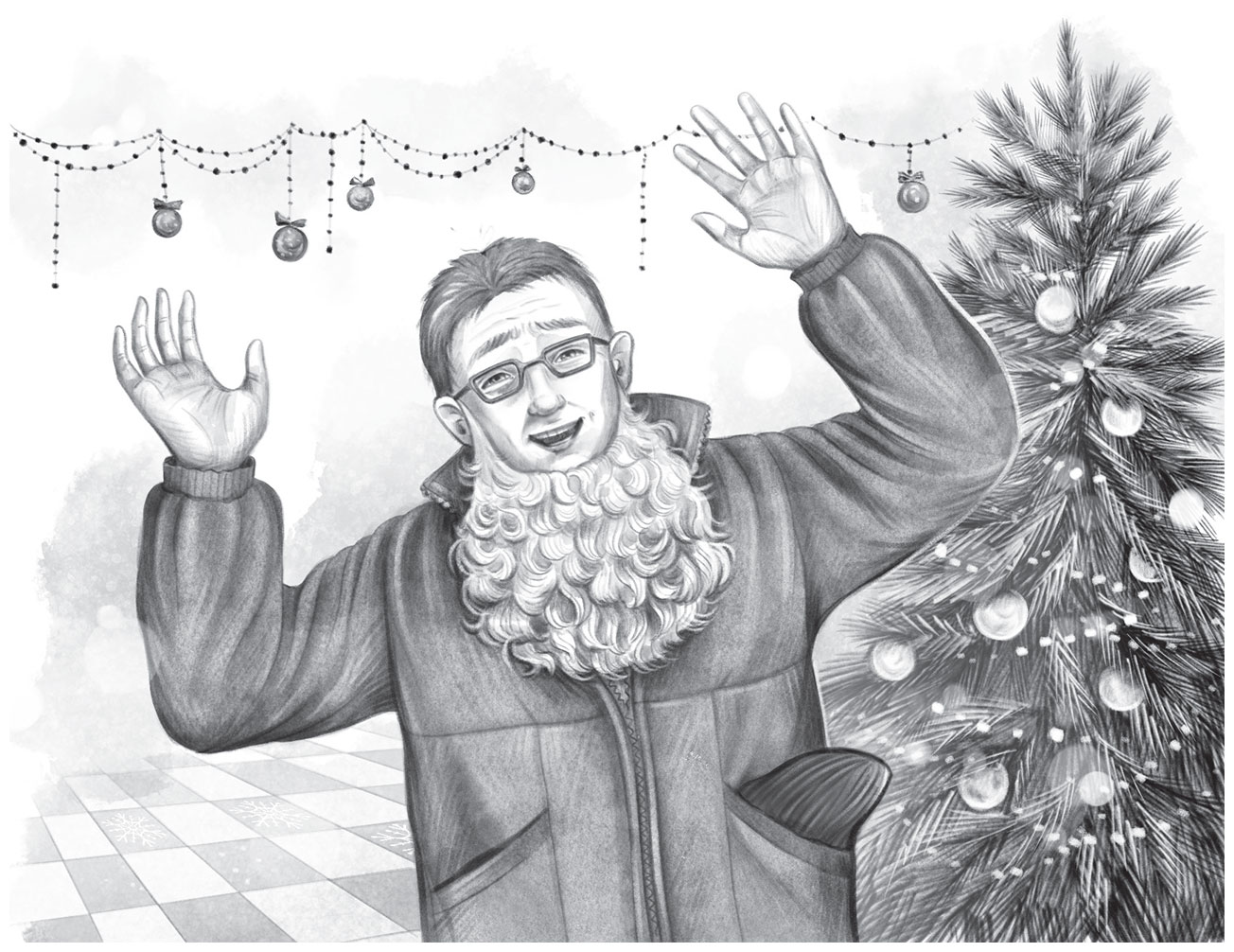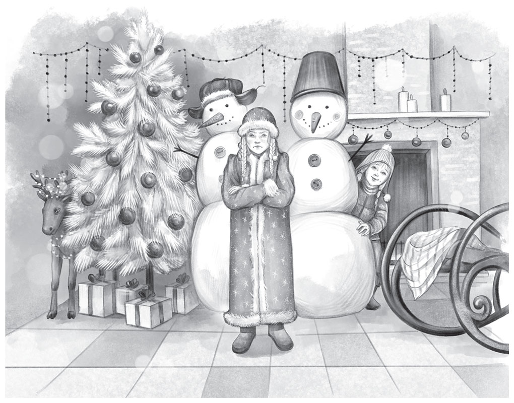 Папа махнул рукой в сторону касс. За ними стояла белая пушистая ёлка, украшенная яркими игрушками, а рядом камин, кресло-качалка с белым пледом и несколько снеговиков из пенопласта.