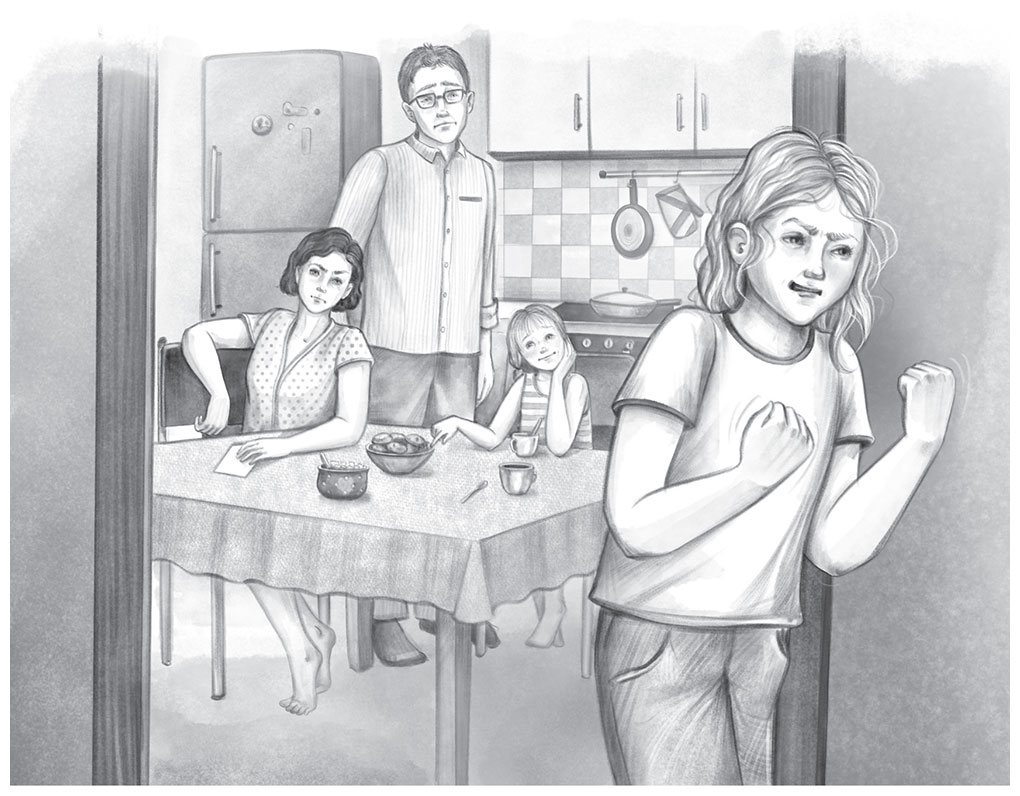 – Спасибо, мам, пап, всё было вкусно, – сказала она и отправилась в комнату.