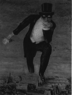 Р. Магритт. Возвращение пламени: «Под видимой реальностью мира сокрыта тайна. Здесь она является в облике Фантомаса, овладевающего всем вокруг»80