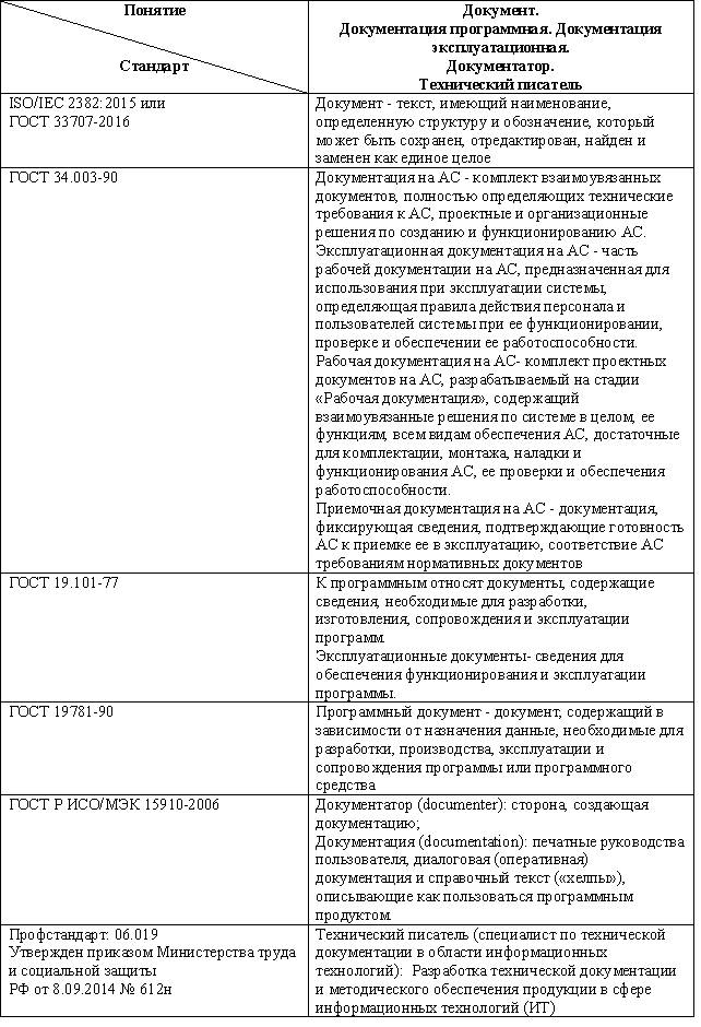 Основные понятия в этой области, используемые при разработке документации: