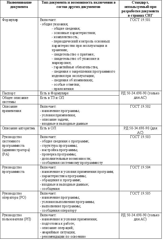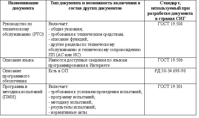 В таблице 3 представлен полный перечень документации (программной и эксплуатационной) на АС согласно ГОСТ (или ИС, которая может считаться видообразующим типом АС), который может быть использован разработчиком.