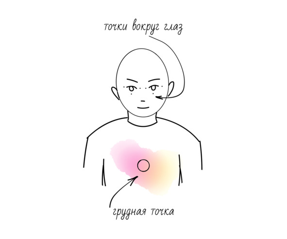 Итак, в ПВО используется семь точек. Одна – посередине груди и шесть – вокруг глаз.