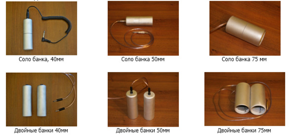 Выбор правильного размера банок необходим для получения точных показаний на э-метре. На этом фото для сравнения сразу приведены банки 40 мм, 50 мм и 75 мм.